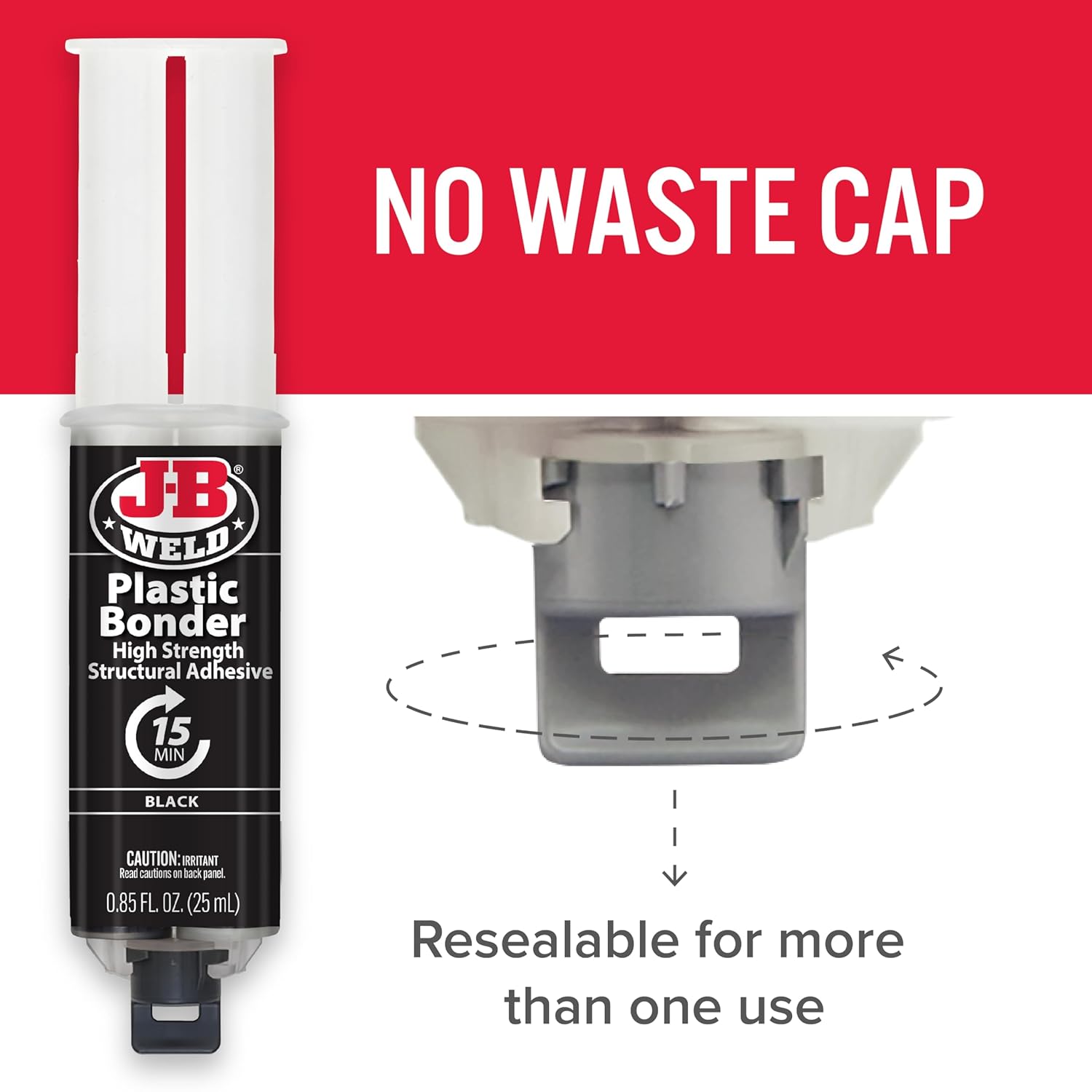 J-B Weld 50139 Plastic Bonder Body Panel Adhesive and Gap Filler Syringe - Black - 25 ml